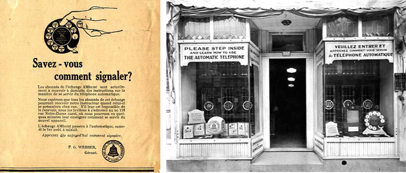 Cette décennie marque également un tournant majeur dans l’histoire de Bell en matière de technologie grâce à l’introduction du service de commutation automatique, officiellement inauguré le 19 juillet 1924 au central Grover, à Toronto. Le passage du téléphone manuel au téléphone automatique est un changement radical pour les abonnés à l’époque, nécessitant de vastes campagnes publicitaires et de relations publiques, incluant des dépliants éducatifs et des publicités imprimées. À la fin de l’année 1926, on compte six centraux automatiques en service sur le territoire de Bell, desservant 60 000 abonnés.