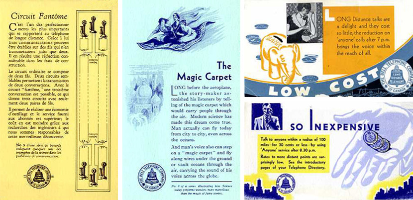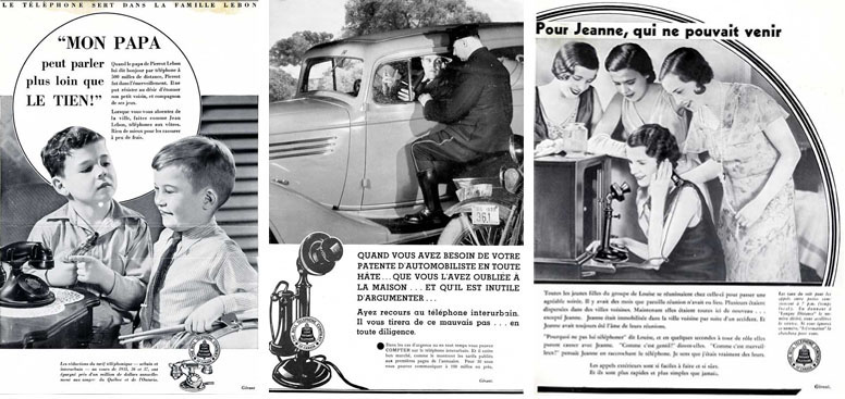 Dans les années 1920 et jusque dans les années 1930, les encarts publicitaires comme ceux ci-dessous s’avèrent efficaces pour informer un grand nombre de consommateurs à propos des plus récentes technologies et des avantages du service téléphonique.